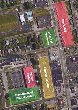 Construction on a new parking garage across from the Erma Ora Byrd Clinical Center (BCC) on 15th Street, directly behind the CHH Surgery Center, is set to begin Monday, March 2. The last day for parking on the current parking lot on that site will be Friday, Feb. 28. Overflow parking will be available at Northcott (along Hal Greer Blvd. across from the new School of Pharmacy building) and Kinetic Park. Please remember that the top level of the parking deck at the BCC is designated for patient parking only.