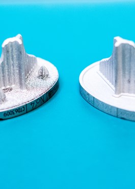 Photo: The cementless implant (left) and cemented implant (right) used in Mako joint replacements. Cementless implants allow the patient’s bone to naturally form a bond.